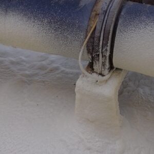 كم يعلم البعض يوجد على الاسطح العديد من المواسير و التمديدات و اجزأء يصعب الوصول اليها بطرق العزل التقليدية لذلك يتم إستخدام مادة البولي يوريثان فوم لعزل الاسطح الخرسانية لما تحتوية من مادة رغوية و بإستخدام ماكينات رش مخصصة لرش البولي يوريثان فوم كما هو مبين بالصورة حيث يتم عزل الاسطح و الاعمدة وحتى المواسير ولا يتطلب أزالتها وهذا يعتبر مستحيلا في بعض الاحيان .